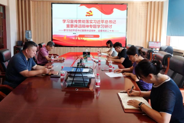 为进一步贯彻落实中共黑龙江省委办公厅《关于认真学习宣传贯彻落实习近平总书记在省部级主要领导干部“学习习近平总书记重要讲话精神,迎接党的二十大”专题研讨班上重要讲话精神的通知》要求,8月8日上午我院召开8月份第一次党委理论学习中心组学习暨 “学习宣传贯彻落实习近平总书记重要讲话精神”专题学习研讨会。党委委员王杜春、白玉华、李伟参加,办公室负责人赵红玉列席会议,党委书记李友善主持学习。