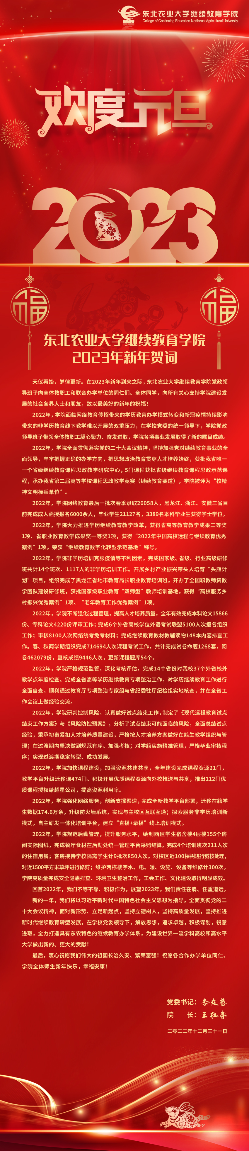 东北农业大学继续教育学院2023年新年贺词