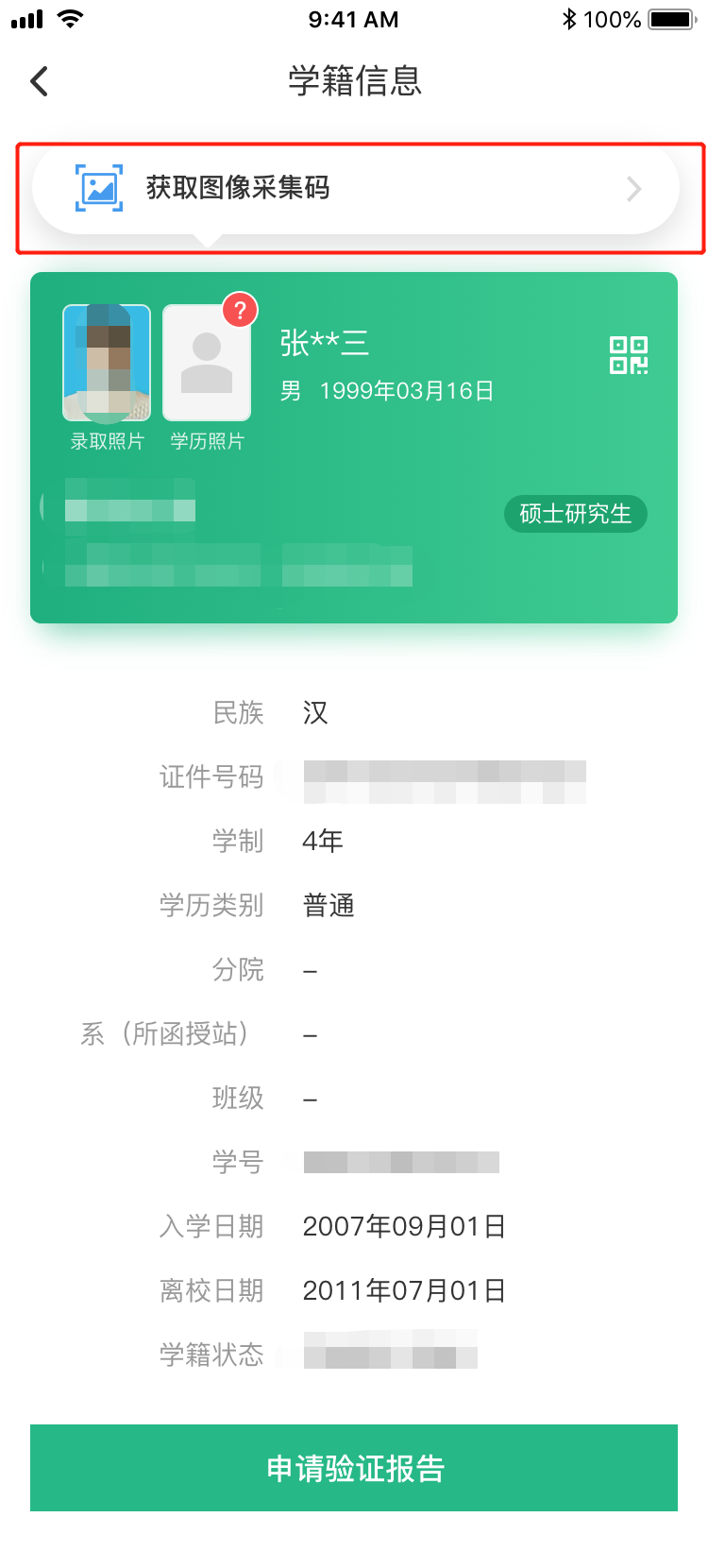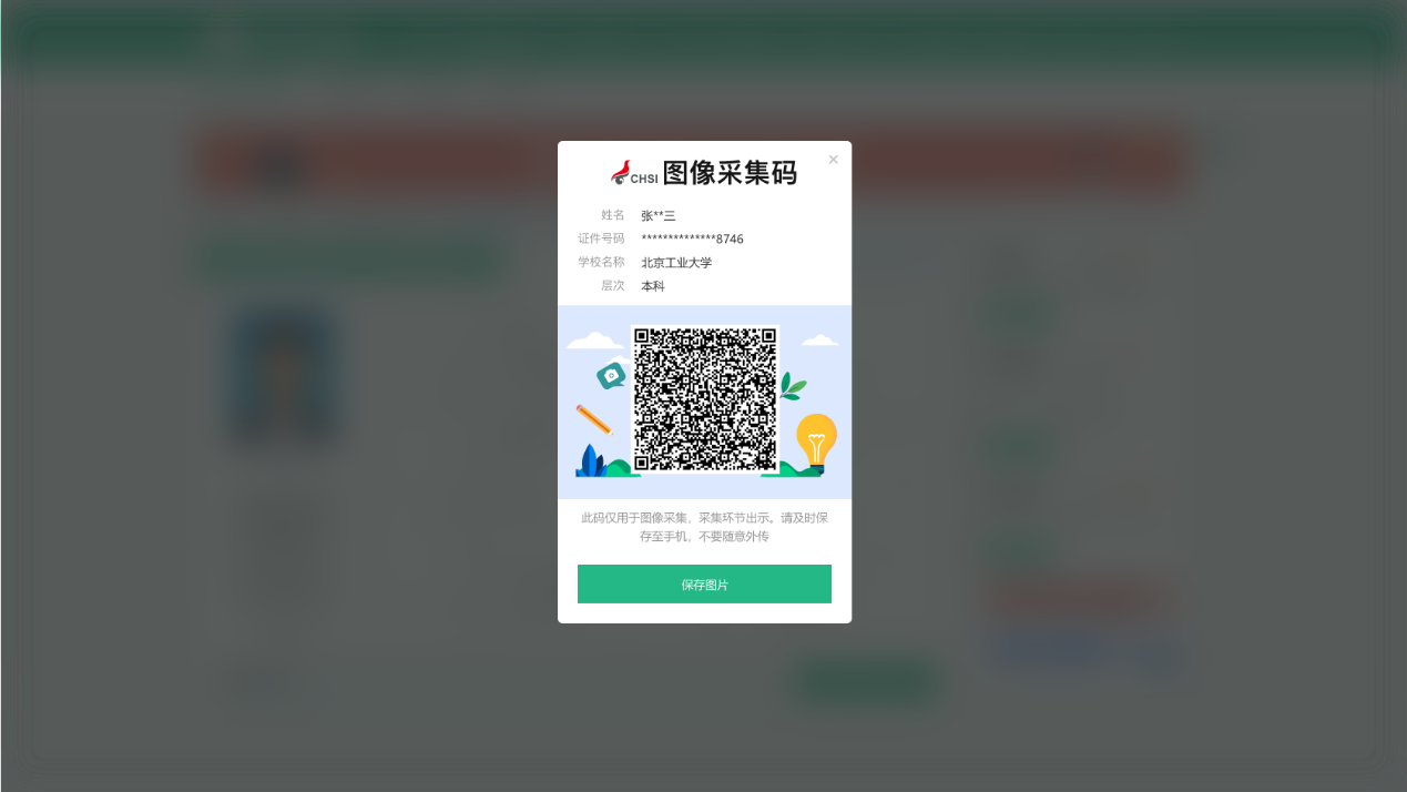 3.选择学籍,查看对应采集码并保存图片