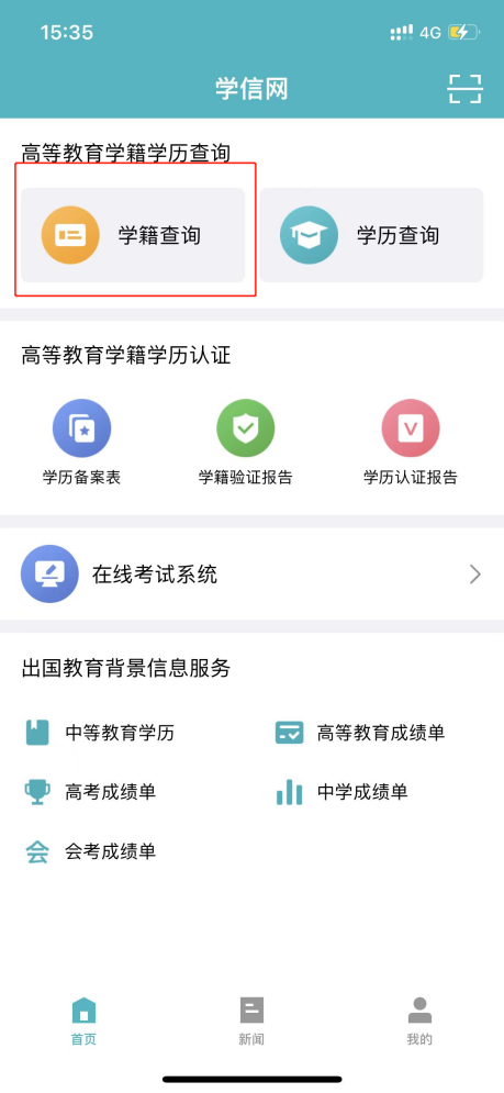 1.登录学信网APP,点击“学籍查询”,查看学籍学历信息