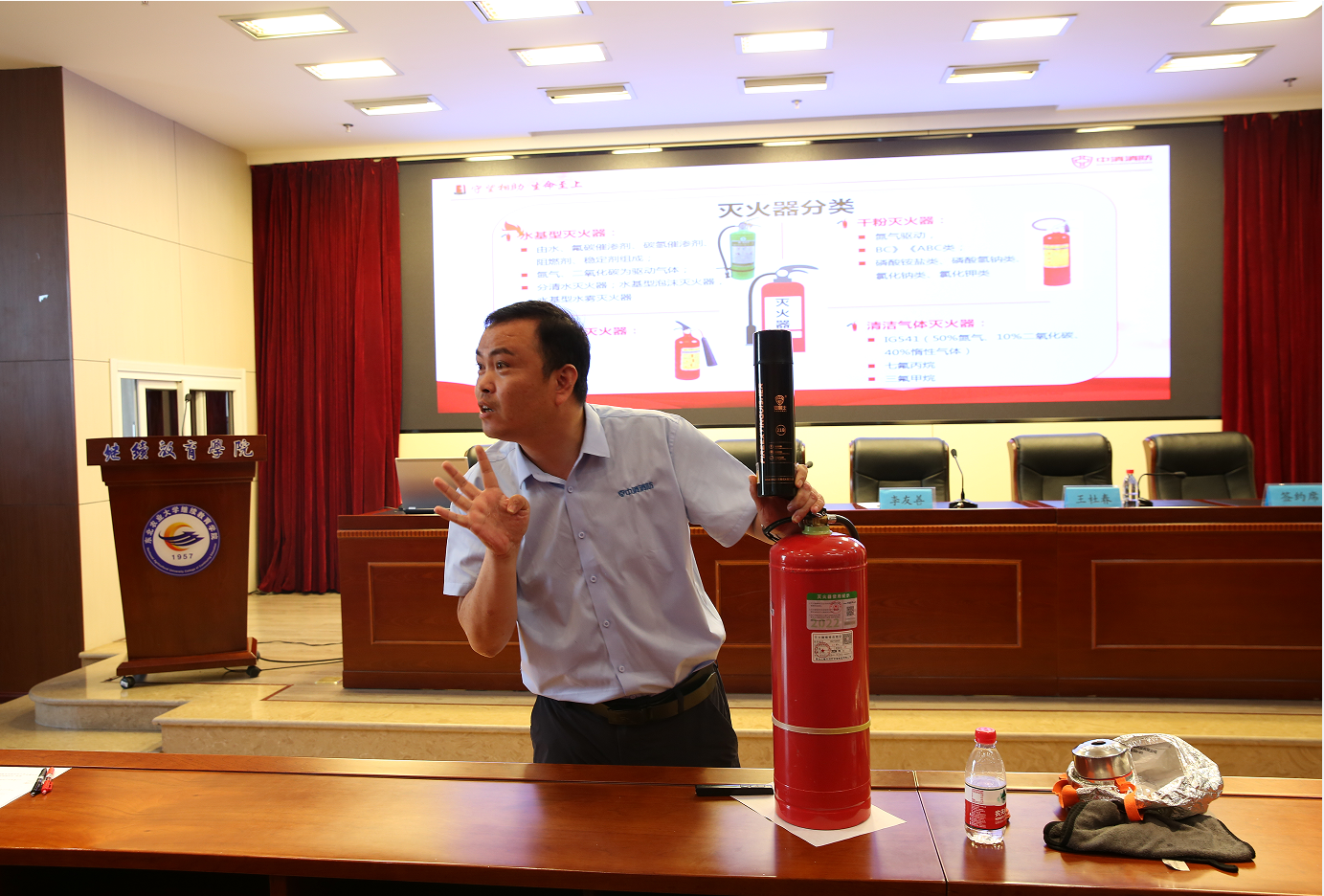 学院同时邀请到黑龙江中消消防技术咨询服务中心讲师王生彬对教职工进行消防安全培训。王生彬通过详细讲解、实际演示、视频警示、典型案例等方式,从基本消防安全知识、火灾逃生自救措施、消防器材使用、常见火灾预防以及消防安全注意事项五个方面进行讲解。