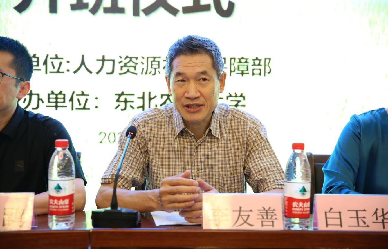 开班式上,李友善介绍了东北农业大学概况,说明了本期高级研修班是东北农业大学申报的人力资源和社会保障部专业技术人才知识更新工程2023年高级研修项目,以及我校作为全国新型职业农民培育示范基地、黑龙江省农业和农村基层干部培训基地开展培训情况。他指出,本期研修班有三个特色,一是师资力量强,由校内、校外以及企业专家组成;二是培训内容丰富,涵盖粮食作物分子育种专业的主要内容;三是研修内容理论与实例结合,能够满足学员的培训需求。最后,他对全体培训学员提出三点希望:一要合理安排时间,按照研修日程完成学习任务;二要认真完成研修后的跟踪反馈任务,给基地提供有价值参考建议;三是有学历提升需求的学员可关注学校相关招生简章。