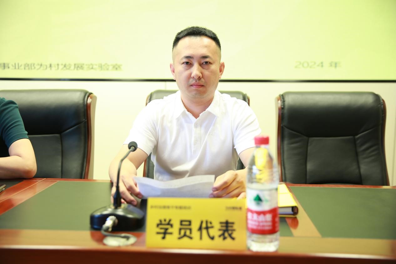 青冈县农业农村局社会事业发展中心科员邹纯鹏作为学员代表发言,感谢黑龙江省农业农村厅和东北农业大学为全体参训学员创造的学习机会、搭建的理论与实践结合的平台。作为乡村治理的基层干部,将严格遵守培训纪律,以新理念、新内容和永不变更的工作态度,以史为鉴,扎实本领,真学实干,虚心求教,圆满完成学习任务。