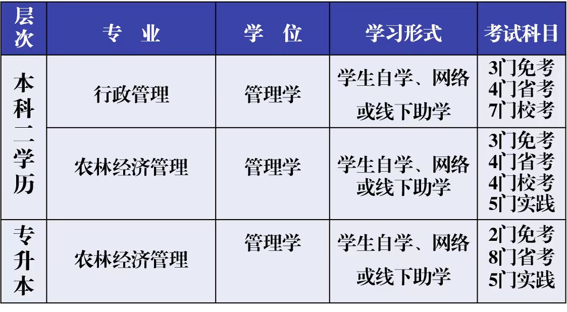 全省统考课程(4门):管理学原理(中级)、农业企业管理学、农业农村政策学、农产品营销学。