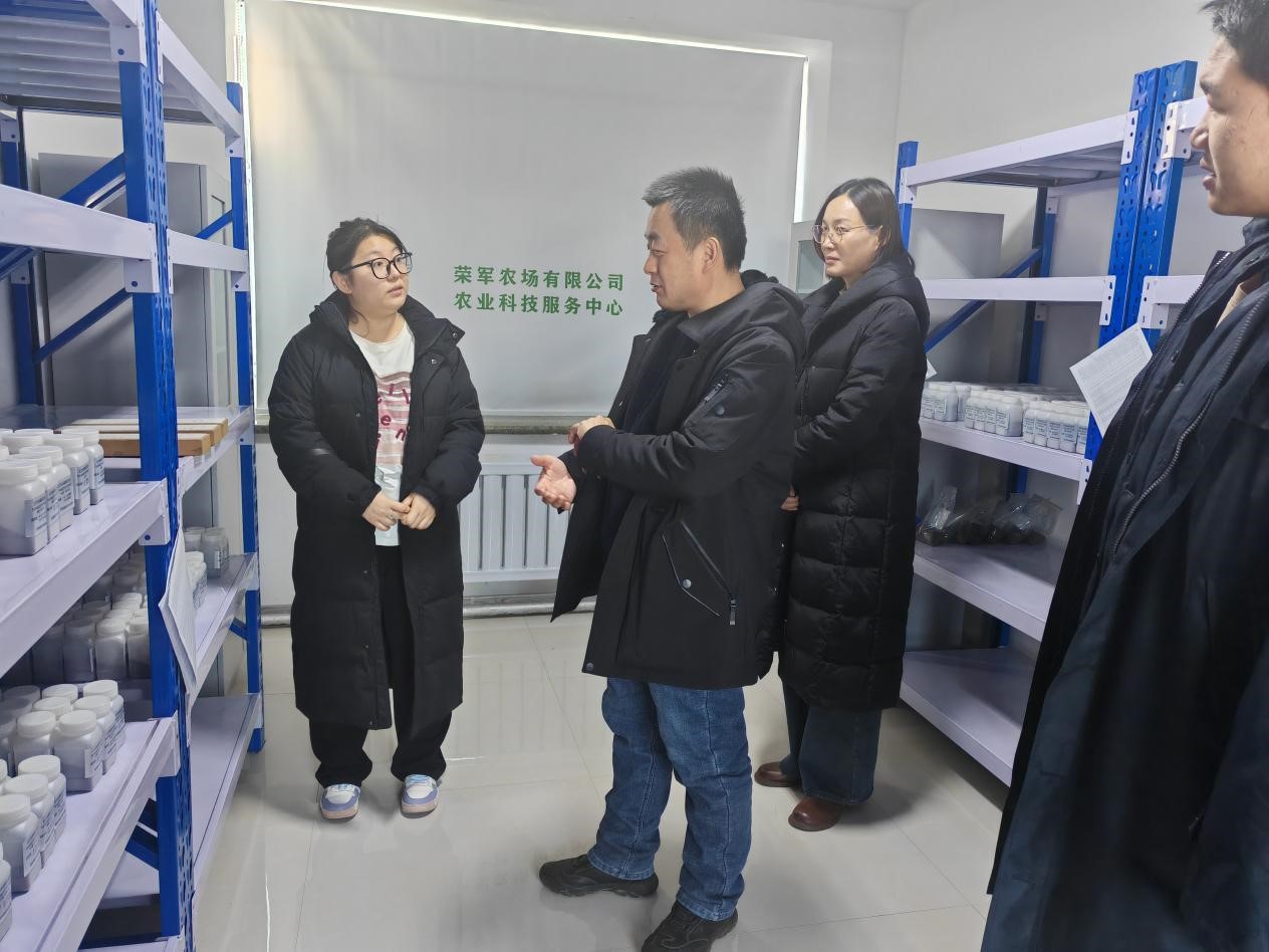 为深入贯彻党的二十届三中全会精神,推动黑龙江省乡村产业振兴带头人“头雁”项目培育工作,结合学员的需求,12月19日,东北农业大学基地戴建军副教授和王玉波副教授来到荣军农场有限公司开展“头雁”学员跟踪指导服务,围绕玉米栽培技术、肥料农药使用等内容展开,通过“现场交流、实地考察”了解学员发展中的困境和存在的问题,跟踪“头雁”成长发展,更好地解决“头雁”学员们生产中的实际问题。