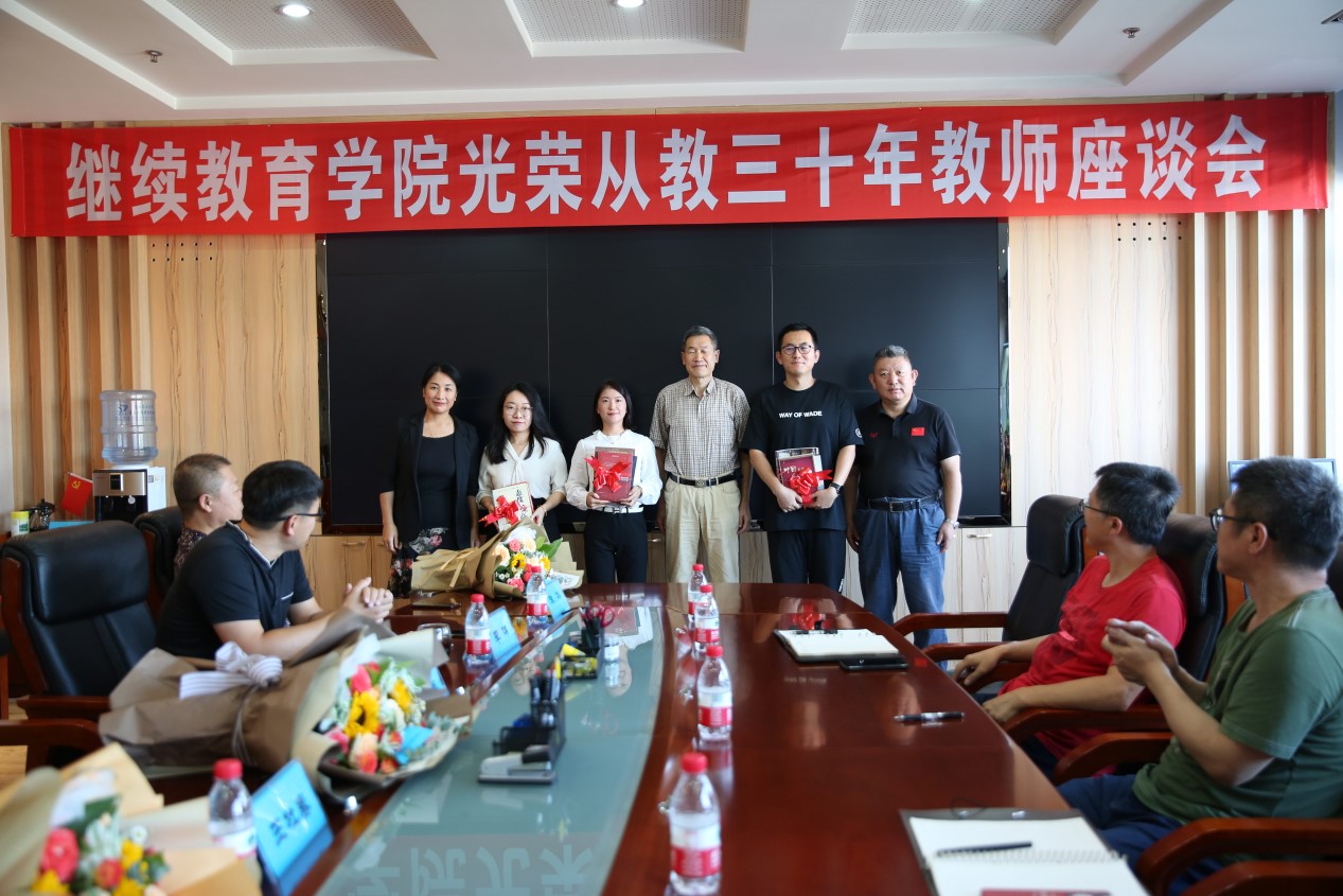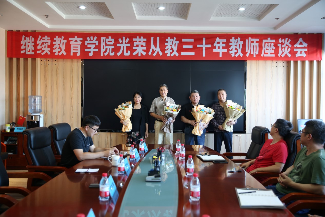 9月7日下午,在第39个教师节来临之际,继续教育学院在三楼会议室举办了光荣从教30年教师座谈会,学院从业30年教职工李友善、王杜春、白玉华、徐冰,及各部门负责人和新教工代表参加会议,会议由副院长李伟主持。来自学院各部门的22名老中青年教师齐聚一堂,共话30年教书育人感悟,共谋学院实现高质量内涵式事业发展。