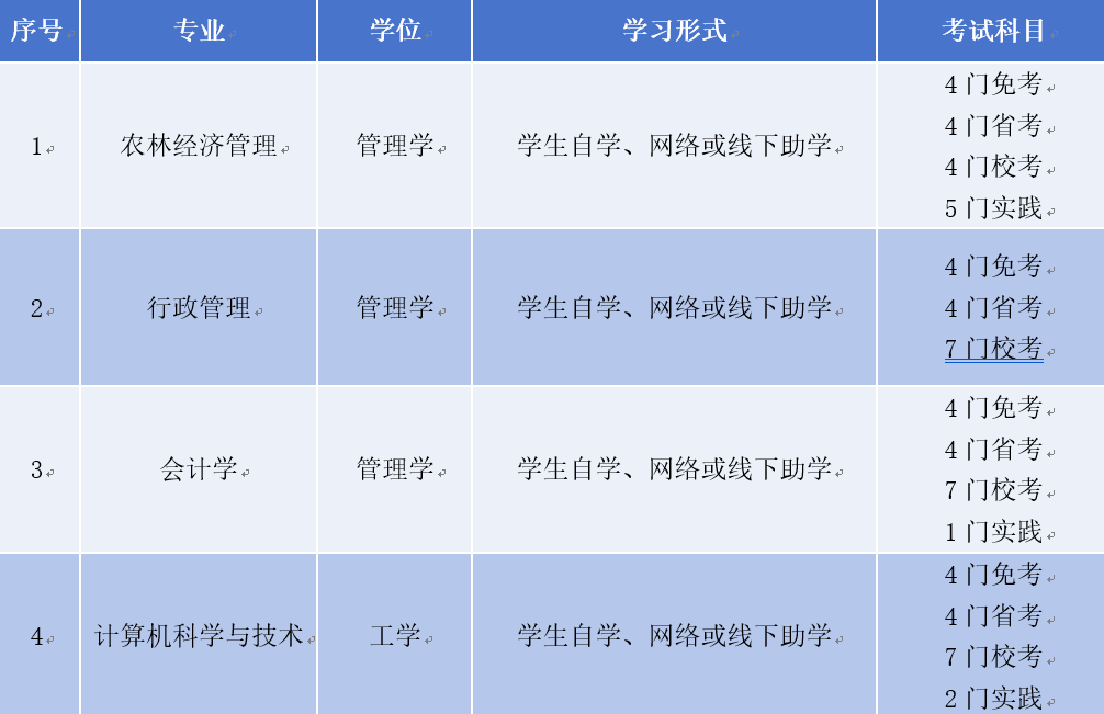 考试地点:全省统考课程在省招生考试院统一安排的考点,以考前通知单为准。校内考试课程与实践考核考试时间和地点由东北农业大学设置,具体时间另行通知。所有考试科目单科及格,可循环报考。