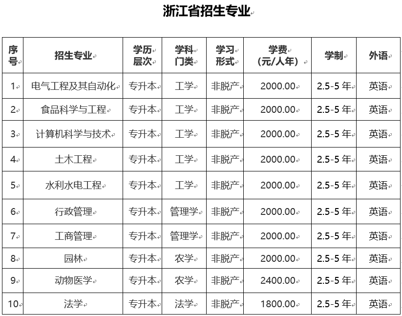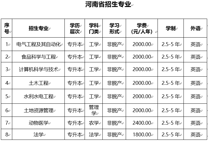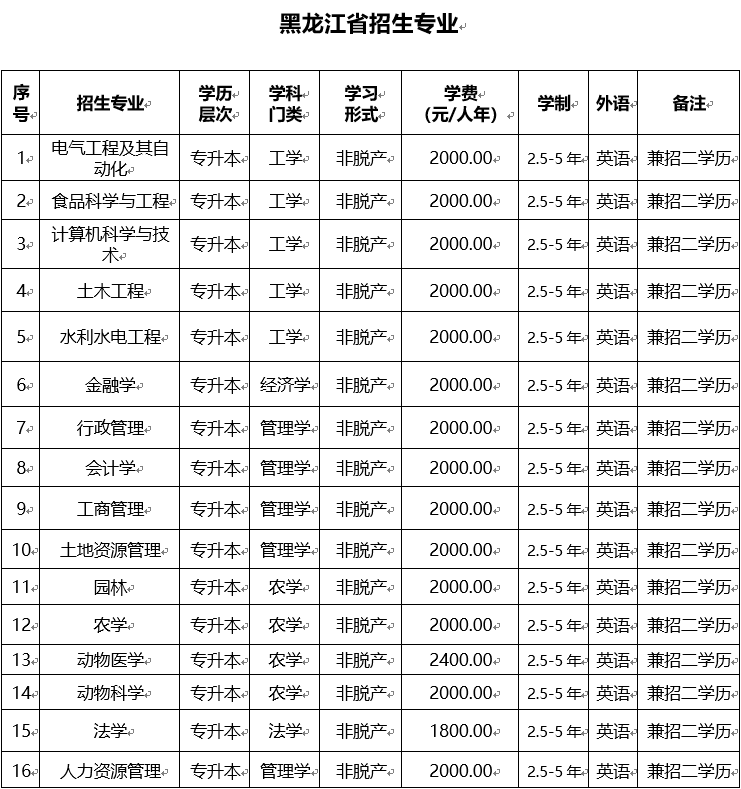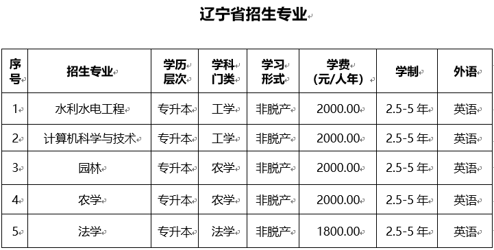 东北农业大学高等学历继续教育非脱产(函授)本年度只招收专科升本科层次,且只招收英语考生。