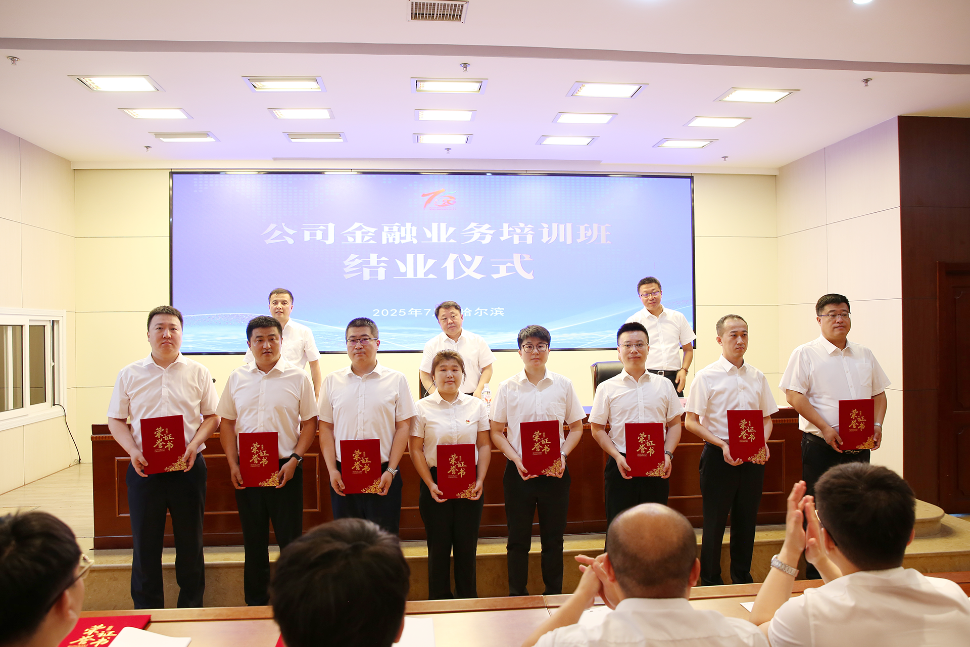 6月10日至7月11日,黑龙江省农村信用社联合社公司金融业务培训班在我校成功举办,来自全省农信系统的152名业务骨干进行了为期30天的封闭式集中培训,圆满完成了32门专业课程、5次综合测评的学习任务,有效实现了金融知识的内化与专业能力的提升。结业仪式于7月11日举行,黑龙江省农村信用社联合社党委书记、理事长刘长旭,党委委员、副主任盛象斌,公司金融部部长赵立冬出席仪式。