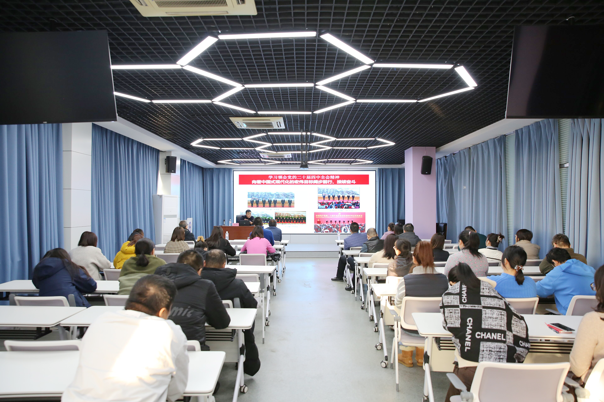 会上,侯坤以《向着中国式现代化的宏伟目标阔步前行、接续奋斗》为题,从全会的重大意义、目标原则与战略要点等方面作了系统宣讲。他重点解读了中国式现代化的科学内涵与中国特色,深入剖析了高质量发展这一首要任务与新质生产力这一核心驱动力,系统阐述了全面深化改革、推进共同富裕、统筹发展与安全等战略部署的深刻要义与实践路径。