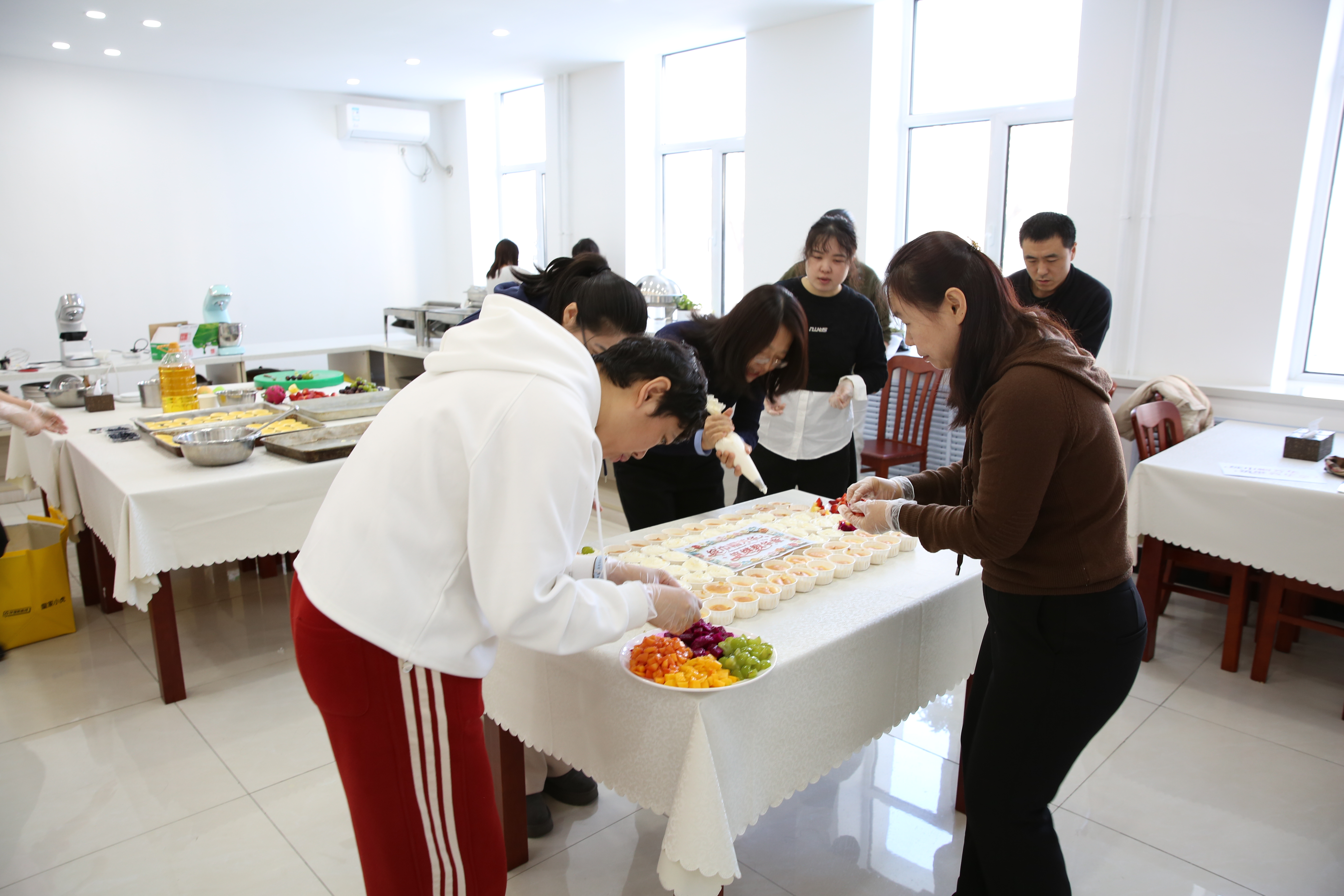 活动现场暖意融融,欢声笑语此起彼伏。全体女教职工化身“美食匠人”,分工协作,默契配合,亲手制作杯子蛋糕与蛋挞,在甜蜜的氛围中庆祝属于自己的节日。经过一番精心制作,一个个色彩缤纷的杯子蛋糕,一盘盘香气四溢的蛋挞新鲜出炉。这些精致的甜品,不仅是指尖技艺的展现,更凝结着女教职工对生活的热爱、对工作的热忱,以及对学院大家庭的深情。