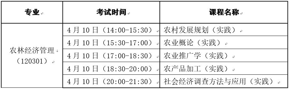 农林经济管理专业专升本层次实践环节考核科目及时间: