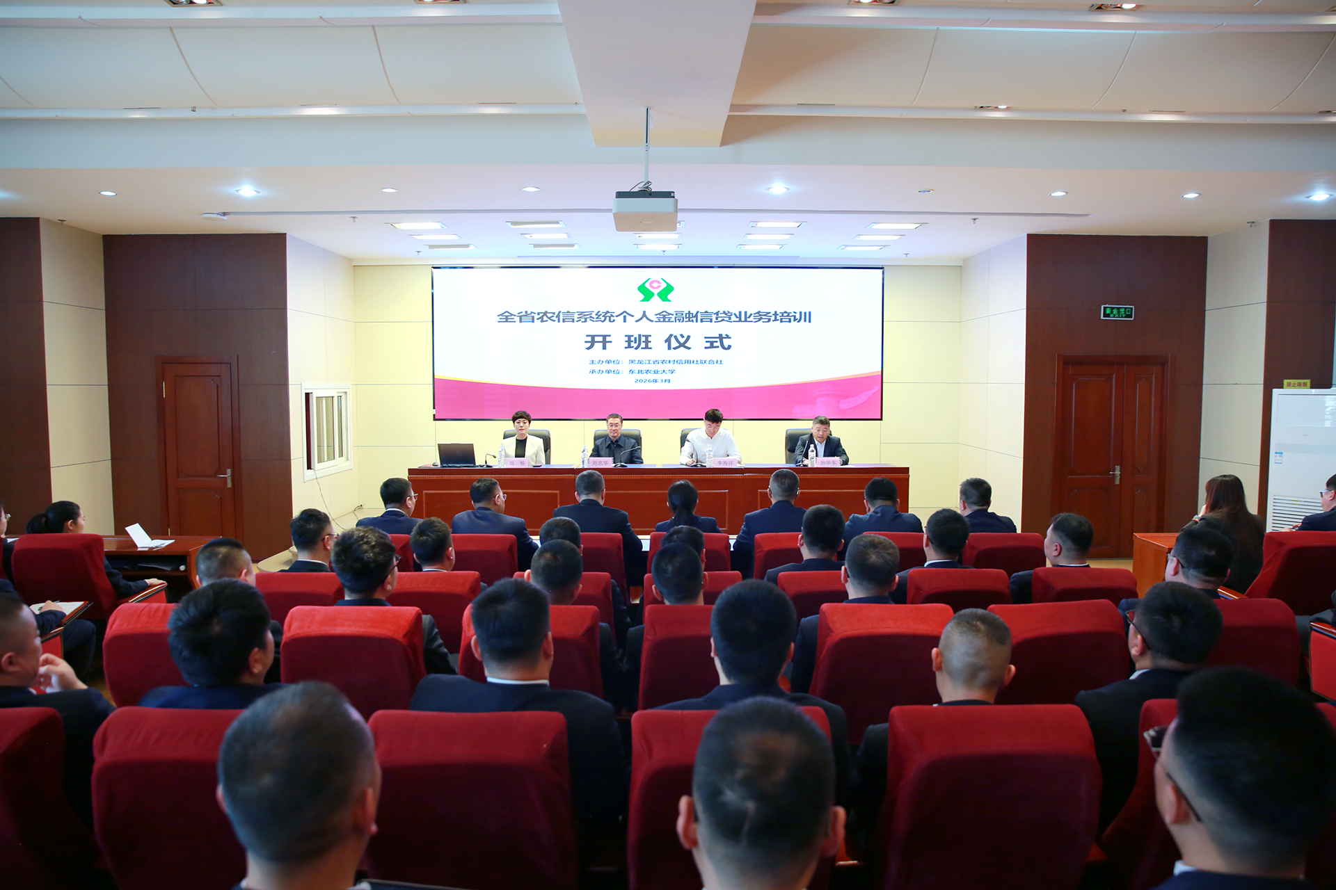 3月15日,由黑龙江省农村信用社联合社主办、东北农业大学承办的全省农信系统个人金融信贷业务培训班在我校继续教育学院正式开班。省联社党委委员、副主任李海洋,我校副校长刘忠华,省联社个人金融部部长孙华东,我校继续教育学院院长刘畅出席开班仪式。仪式由孙华东主持,来自全省农信系统的193名个人信贷业务骨干参加了本次培训。
